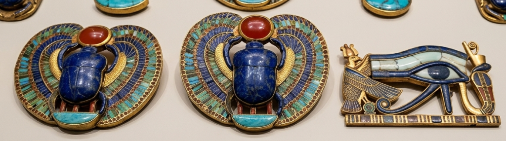 Gli antichi Egizi incastonavano lapislazzuli e corniole nei loro amuleti non solo per bellezza, ma per proteggere il viaggio dell’anima e del corpo.
